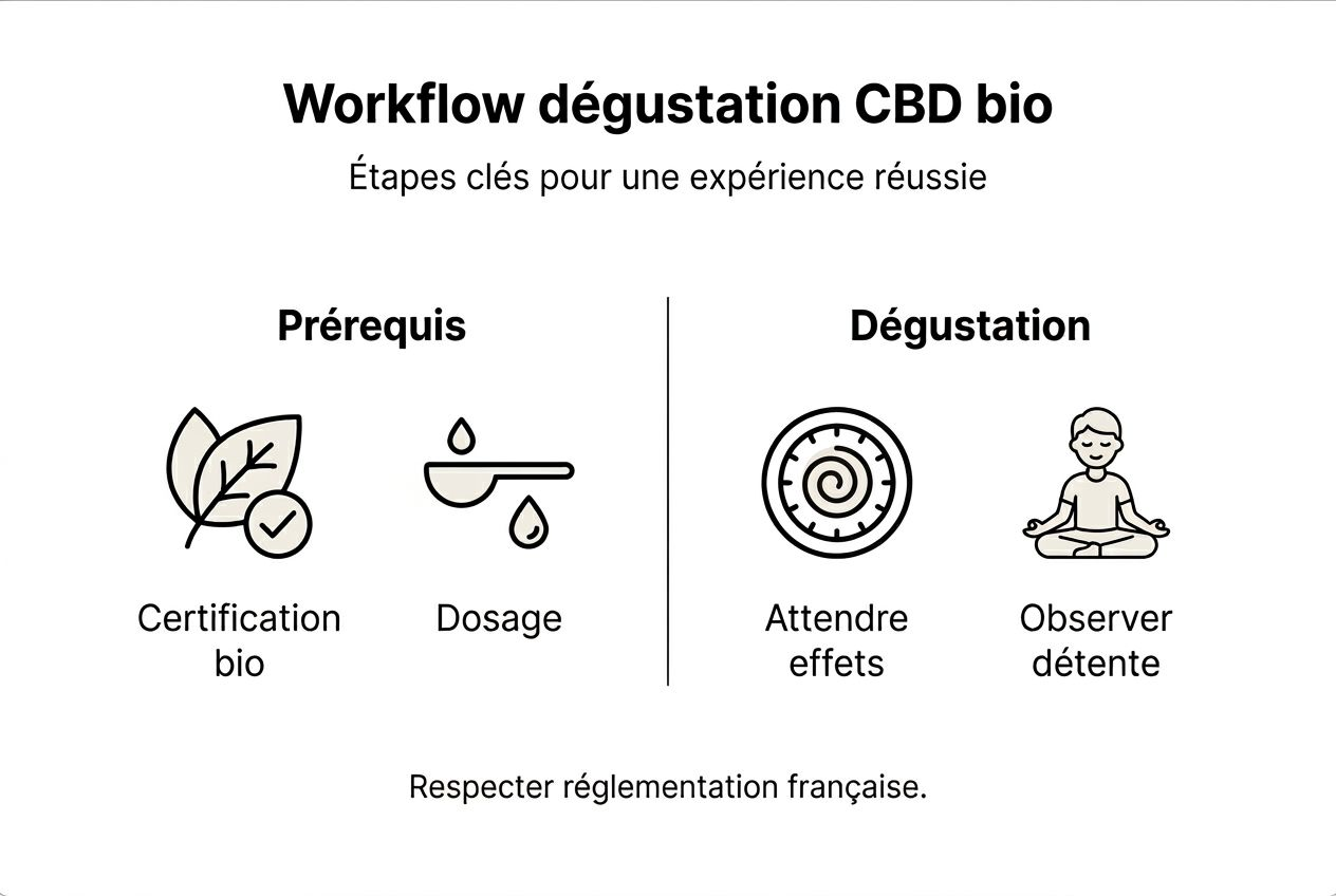 Conseil de pro: Tenez un journal de dégustation notant la date, le produit, la dose exacte, l'heure de prise et vos observations d'effets. Cette documentation personnelle vous aidera à affiner votre workflow dégustation edibles CBD bio lors des prochaines expériences.